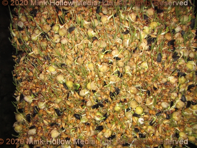 Sprouted grains are very nutritious, the critters get to have fresh greens on a regular basis, PLUS it helps to defray the cost of feed. I can easily triple or quadruple the amount of feed I have available, simply by sprouting it.