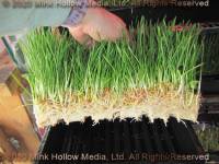 When it comes time to feed the buns, what I actually do is flip each mat of greens over, and use a back saw to cut strips that I can give to the gang.