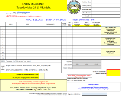Most shows have an entry deadline that will occur anywhere from a few days to a week before the show. This gives the Show Secretary time to enter all the entries and make sure that judging will go smoothly on show day.