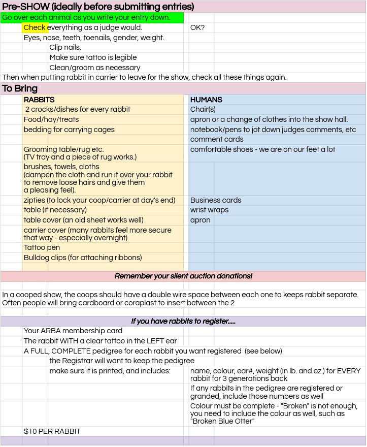 Here is a Rabbit Show Checklist you can use to get ready for your next show….