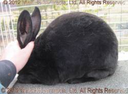 The Himalayan gene restricts color to the extremities. Most standards that allow this color call for all 'useable' portions of the pelt to be white. This allele is affected by temperature - pigment forms only where the skin is exposed to coll temperatures. Skin that is kept warm will grow hair lacking pigment (i.e. white).