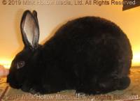 litter ratio: 10/11 full sister to Cloudia Crunchie is a very pretty girl who has become one of my all-time best producing does. I now have a dozen rabbits in my herd that are related to her in one way or another. In her first 6 litters she weaned 49 out of a total of 60 kits. |