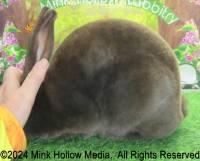 Raisinet comes to us from Rainbow Barn Both her parents are Mink Hollow rabbits, and we are thrilled to be able to add this girl to our herd.