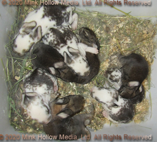 This is part of the reason that it is a good idea to breed your does so that some of them have their litters at the same time. Most of the time it is quite easy to foster baby rabbits to other moms, so long as they are fairly similar in age. All you need to do is just drop them in the other doe's nest box, and she will adopt them. Choir's babies are smaller than Cebreez's, but they are the same age, and it should be no problem for her to go from looking after four to looking after six. I'll keep you posted on their progress.