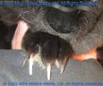 Mismatched toenails on any one foot are a DQ, as are toenails that do not match on corresponding (i.e. both front or both back) feet. White toenails are a DQ in ALL coloured rabbits - including Californian and Himalayan colours. Coloured toenails are a DQ in white rabbits. Broken colours should have toenails that match the colour of the toe.
