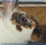 Aside: Simply because a rabbit is lightly marked does not prove it is a Charlie. In order to be a true Charlie, it must have BOTH copies of the broken gene (EnEn). There are numerous modifiers that affect where, what size, and how many spots there will be, so it is possible to have a very lightly marked rabbit that is not a true Charlie. A true Charlie will always produce broken offspring. If it ever produces even one solid coloured rabbit, then it can't be a true Charlie.