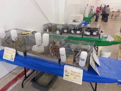Most shows will give you time - often the day before the first shows - to bring your rabbits to the venue and get them set up, either in their carrying cages, or in the coops provided. There are often tables set up for you to use. Occasionally you will have to bring your own (that info will be in the show catalog).