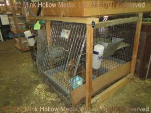 This ready-made cage falls in my Large category. It is almost 2'x4', but it has the advantage of being nearly 24“ high. The addition of the shelf puts it in the 10 sq.ft. range. This cage is for does with litters.