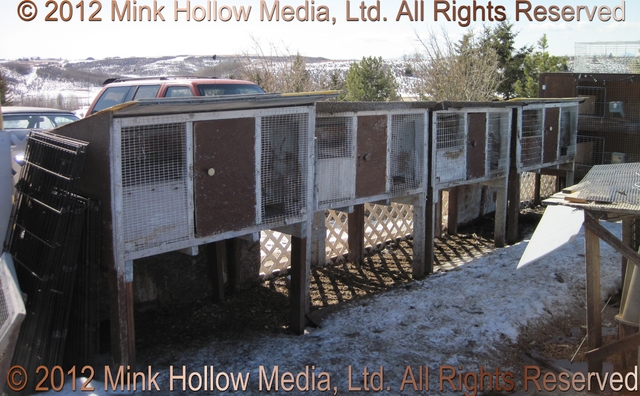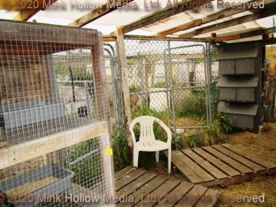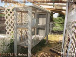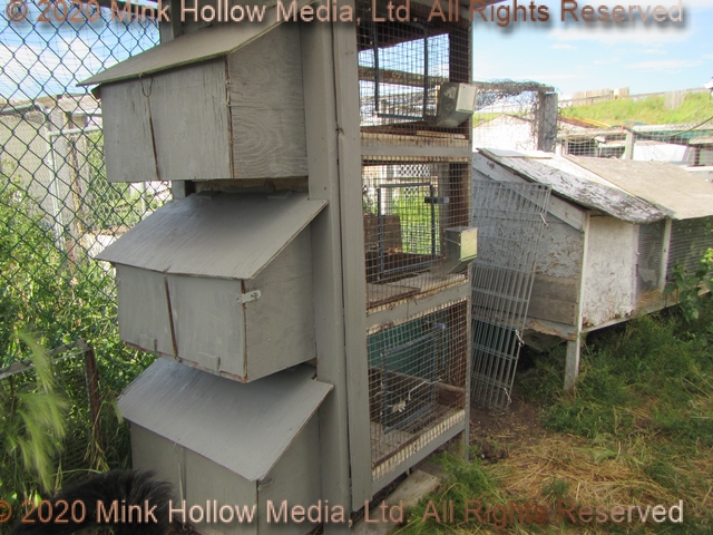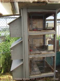 Next we have the old triple-decker. Some of the floor wire had rusted through, so I put wood planking over it. These holes are for retirees, and the occasional individual junior. Most of them are fairly clean so will happily use a litter pan, making clean-up simple. The third image is the one remaining 60”x30“ double. I still need to replace the ends with doors, but other than that, it is in great shape.