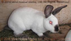 The Himalayan gene restricts color to the extremities. Most standards that allow this color call for all 'useable' portions of the pelt to be white. This allele is affected by temperature - pigment forms only where the skin is exposed to coll temperatures. Skin that is kept warm will grow hair lacking pigment (i.e. white).