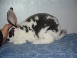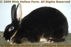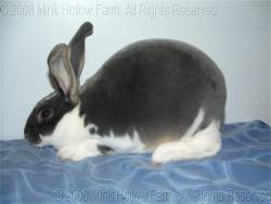 The otter (called tan in most other breeds) should have a solid body top color with a lighter undercolor (next to the skin). The underside (from chin through belly to tail) should be white on the surface with a grey undercolor, and there should be a redish line between the body color and the undercolor. The insides of the ears, and around the nose and eyes should also be reddish (i.e. red or orange in full concentration [black or chocolate] rabbits and tan or cream in dilute [blue or lilac] rabbits).